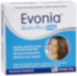 Evonia Biotin Plus 5 mg on vahva ja monipuolinen biotiinivalmiste, jonka sisältämät ravintoaineet tukevat hiusten, kynsien ja ihon rakennetta.