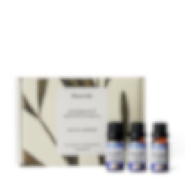 Frantsilan Top 3 eteeriset öljyt samassa pakkauksessa. Laventelia rauhoittamaan, rosmariinia virkistämään ja eukalyptusta hengitysteille.