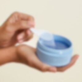 Silmänalusnaamioiden materiaalina on biohajoava, iholla luontaisesti viileän tuntuinen hydrogeeli, ja naamiot ovat hajusteettomia, joten ne sopivat herkällekin silmänympärysalueelle. Tuote sisältää myös tehokkaasti kosteuttavaa hyaluronihappoa useassa eri muodossa, ihon sävyä kirkastavaa niasiiniamidia sekä antioksidanttipitoista mustikkauutetta. Yksi purkki riittää 30 käyttökertaan.