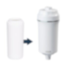 - Suodatin sisältää rakeista aktiivihiiltä, hapetus- ja pelkistysmassaa, kalsiumsulfaattia sekä C-vitamiinia