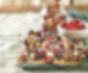 4. Sekoita varovasti pieniä paloja toffeesta pähkinä- ja marjaseokseen. Kaada joukkoon suklaa ja sekoita hyvin. Levitä taikina leivinpellille ja anna jähmettyä jääkaapissa. Leikkaa suupaloiksi. Säilytä jääkaapissa.