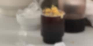 - Mittaa 1 dl luomu kirsikkamehua lasiin.