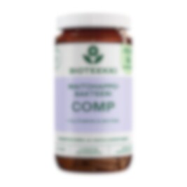 Bioteekki Maitohappobakteeri Comp sopii erityisesti vaativiin elämäntilanteisiin tuotteen monipuolisen ja vahvan koostumuksensa ansiosta. Se sisältää neljä tutkittua maitohappobakteerikantaa sekä glutamiinia ja suolen limakalvon hyvinvoinnille tärkeää biotiinia. Comp sopii sekä jatkuvaan että kuuriluontoiseen käyttöön. Tuotteen kapselikuorilo on kasviperäinen. Kapselin voi tarvittaessa avata ja sekoittaa viileään ruokaan. Tuote saattaa sisältää jäämiä maidosta ja soijasta, jotka ovat peräisin bakteereiden kasvatusliuoksesta. Tuotteella on Valmistettu Suomessa -Avainlippu-tunnus.