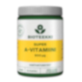 Naisen A-vitamiinin tarve on 700 µg ja raskaana olevan 800 µg päivässä. Miehelle suositellaan 900 µg A-vitamiinia päivässä. Bioteekin Super-A-kapseleissa on A-vitamiinia 900 µg/kapseli.